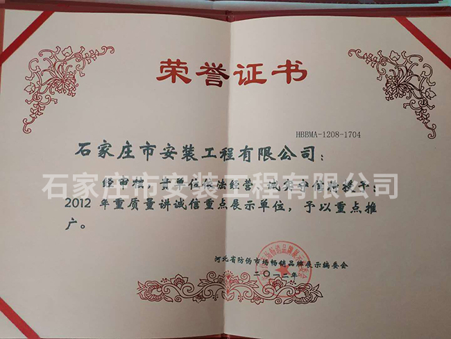 2012年重質(zhì)量講誠信重點(diǎn)展示單位